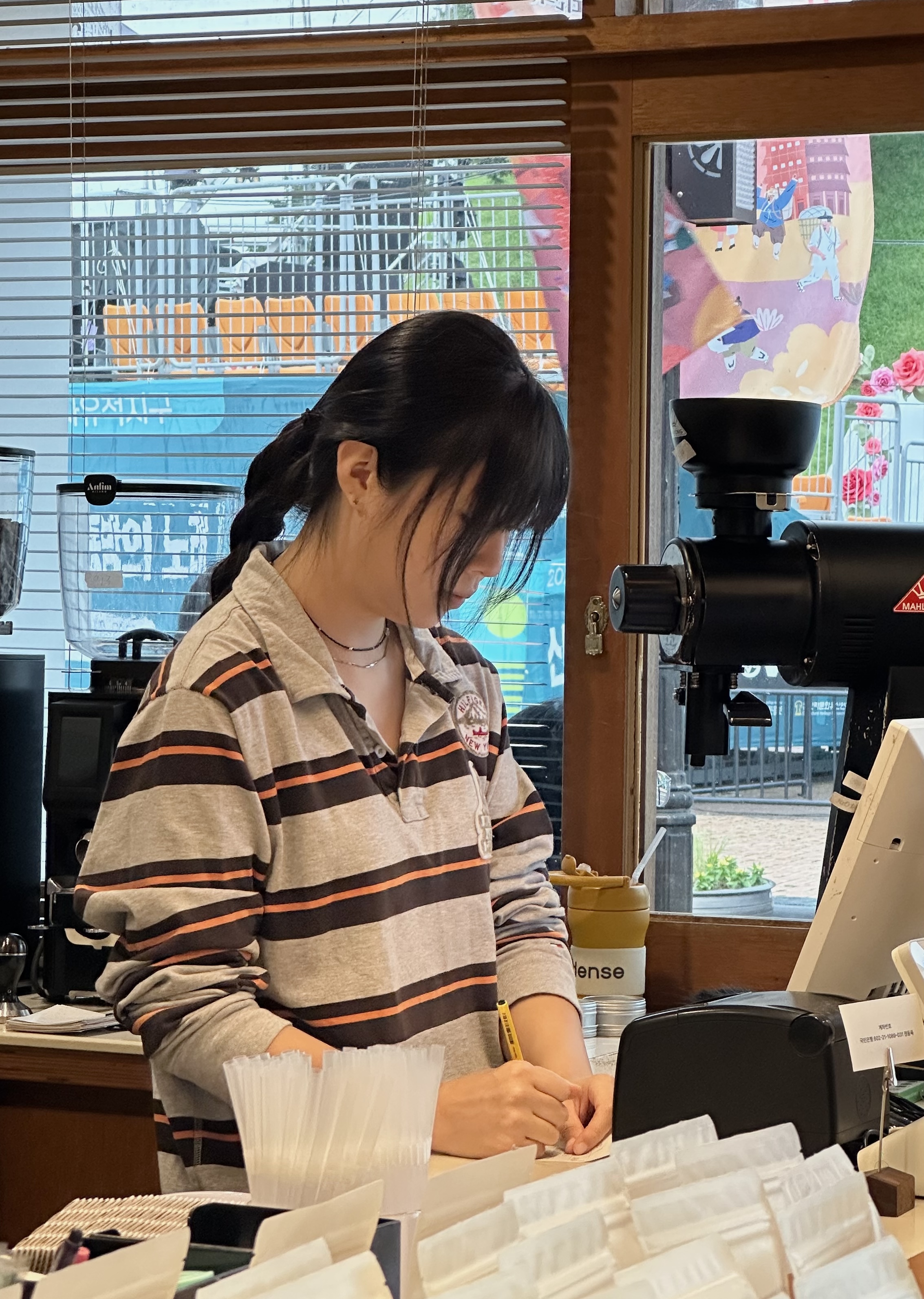 처음 매장 근무를 했던 날이 제일 기억에 남죠. 그때 오전에 출근하자마자 오늘의 커피를 내렸거든요. 사전 교육은 받았지만요. 며칠 전에 대표님이 강연에서 말씀하셨던 것과 비슷하게, 지금 제가 커피에 대해 아무것도 모른다고 생각이 되는데 손님들한테 커피를 드려야 하는 그런 순간이 온 거예요. 옆에 다른 동료 직원분도 계셨지만 결국 제 손으로 지금 이 커피가 만들어지고 있는 거잖아요. 그래서 그날 정말 정신이 없었고 무서웠어요. 그때 커피가 케냐 야라였는데요. 지금도 오시는 단골 손님이 인스타그램에 맛있었다고 게시글을 올린 거예요. 그래서 정말 다행이라고 생각했습니다. 첫날이 어떻게 지나갔는지 기억도 안 나지만 절대 잊을 수 없을 것 같아요.