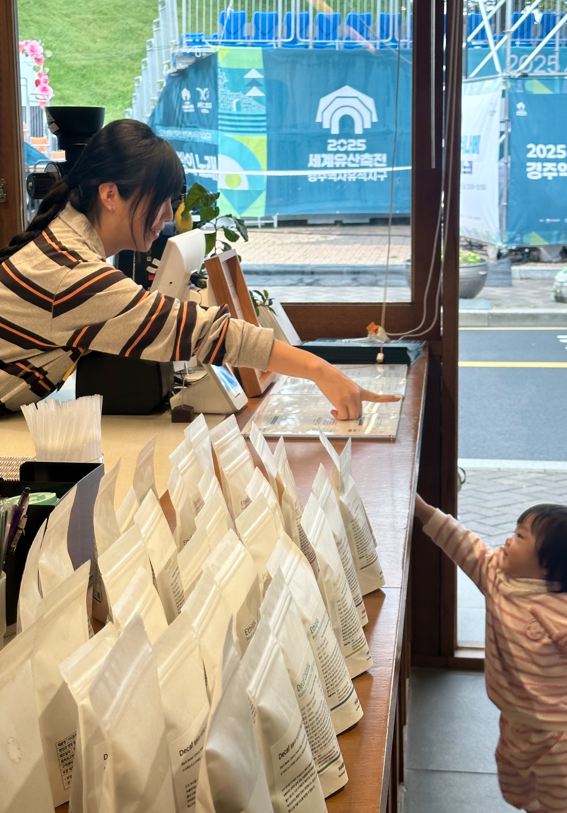저는 어느 카페나 공간을 가기 전에 온갖 후기나 자료를 다 보고 가거든요. 그렇게 찾아보니까 대표님 블로그가 나오는 거예요. 그래서 경주 가기 전날 밤에 블로그 정독을 했죠. 그 전에도 인스타그램은 팔로우하고 있었는데 블로그는 처음 알았어요. 블로그 글을 읽으면서는 이런 글을 쓰는 사장님이 있구나, 생각했어요. 그리고 당시 인스타그램에는 장마로 인해 바뀐 물에 대한 이야기를 쓰셨는데 이런 고민까지 하는 사람이 만드는 커피면 맛이 없을 수가 없겠다는 기대감이 들더라고요. 블로그에 있던 이전 글과 인스타그램으로 구독하는 글까지 읽으며 이곳에 대한 호기심이 커졌던 것 같아요.